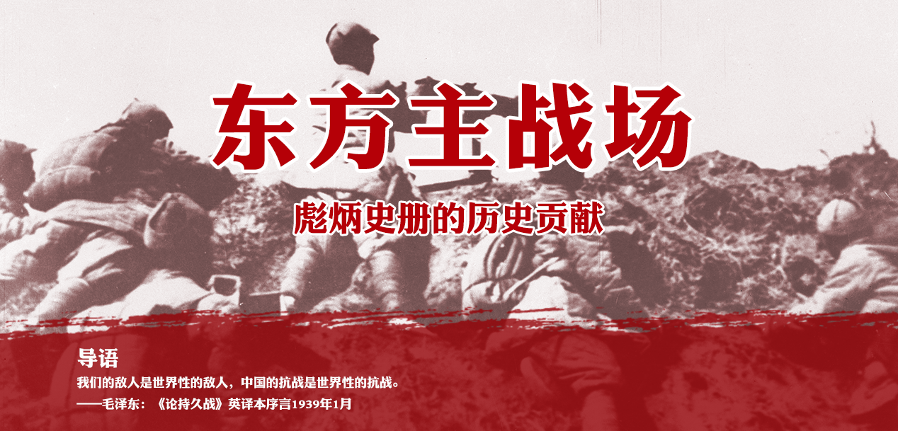 从中国局部抗战开始到1939年欧洲战争爆发,中国已独立抗击日本法西斯侵略八年之久;到太平洋战争爆发,中国已独立抗击日本法西斯侵略十年之久。中国战场始终抗击和牵制日本绝大部分陆军兵力和部分海空军力量。在中国正面与敌后两个战场的夹击下,侵华日军陷入了不能自拔的战争泥潭。太平洋战争爆发后,中国战场与世界反法西斯战争的其他战场融为一体。中国战场是世界反法西斯战争的东方主战场,为世界反法西斯战争做出了不可磨灭的历史贡献。
